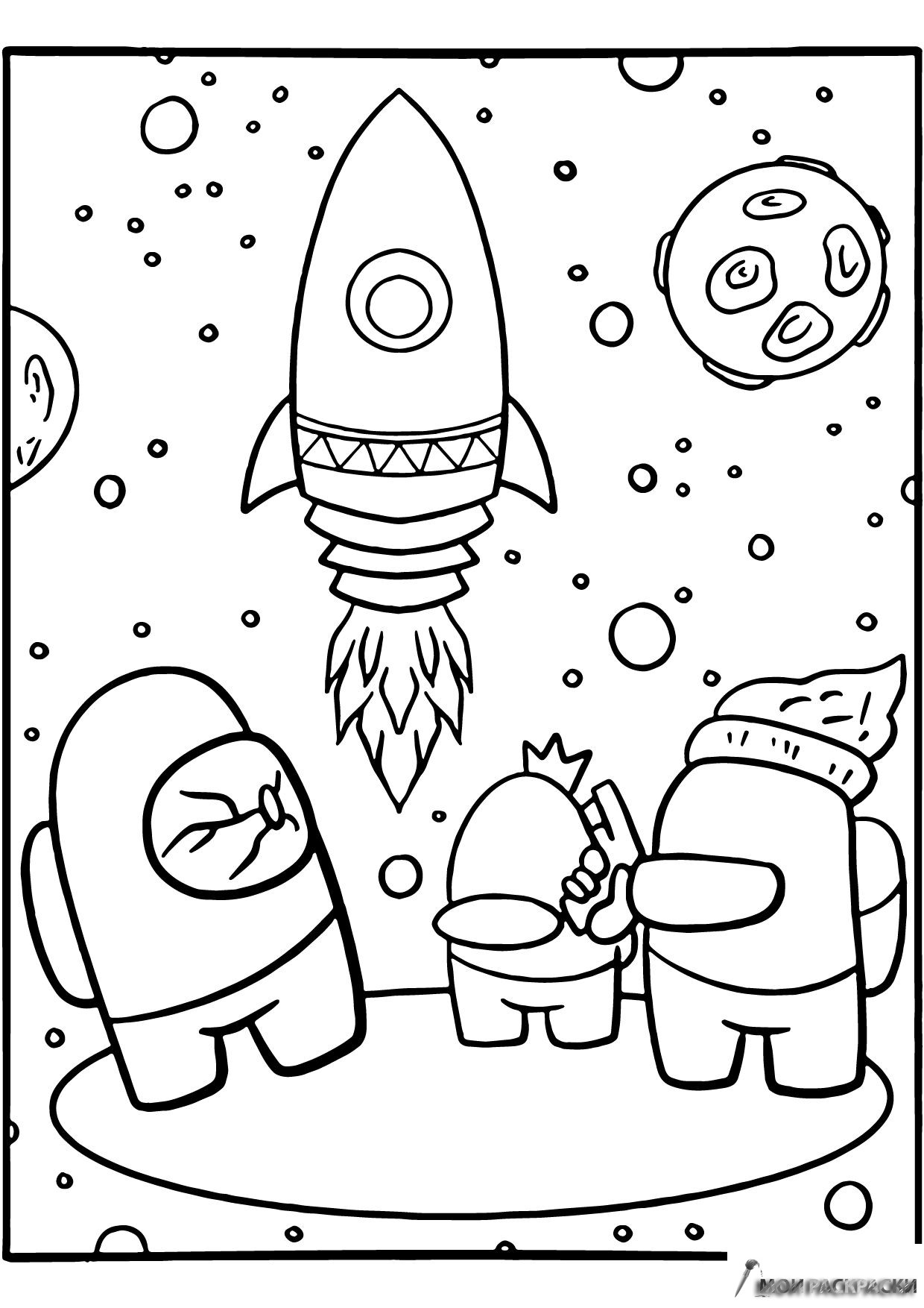 Раскраска Амонг Ас член экипажа, предатели и ракета