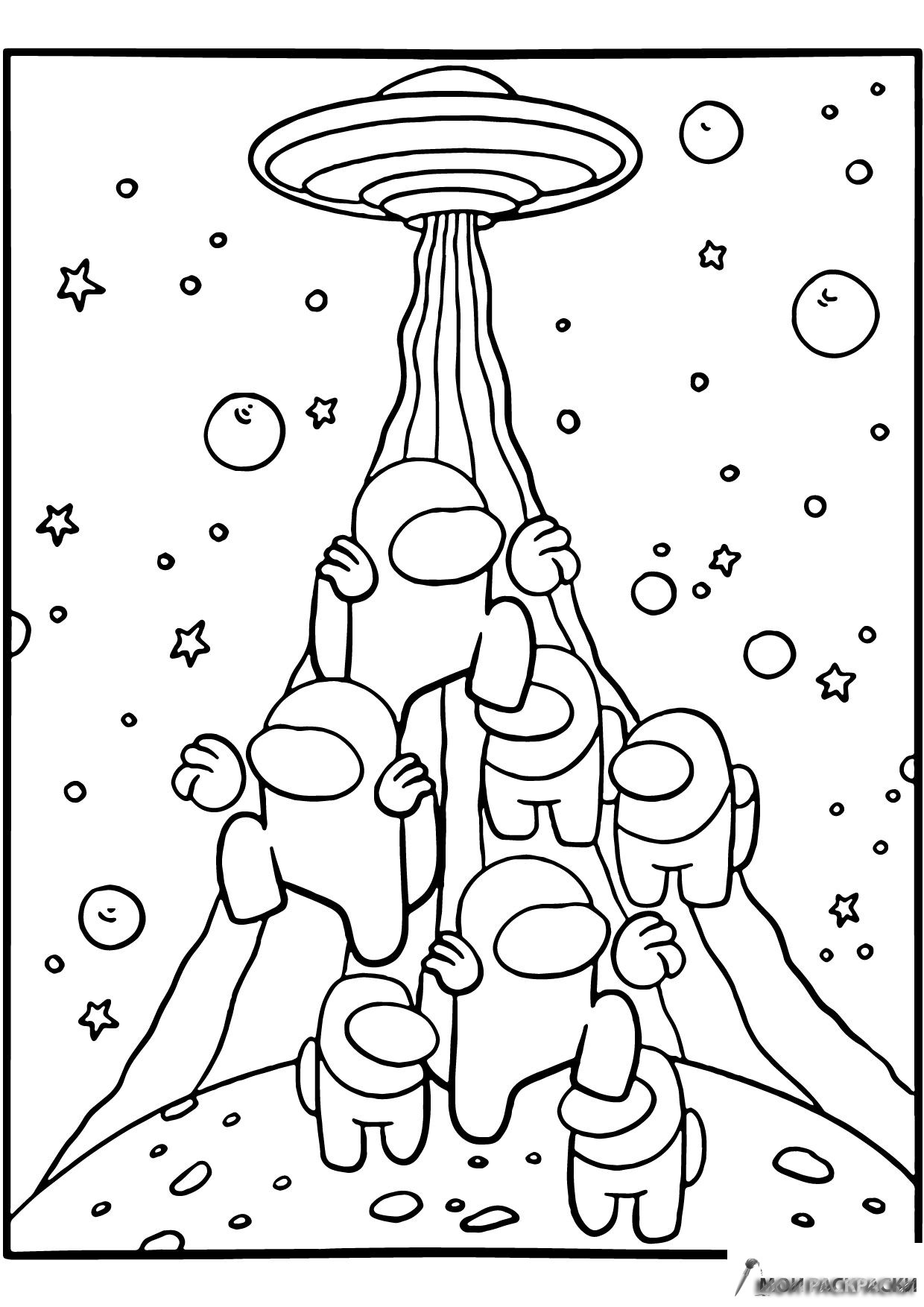 Раскраска Амонг Ас членов экипажа забирает НЛО