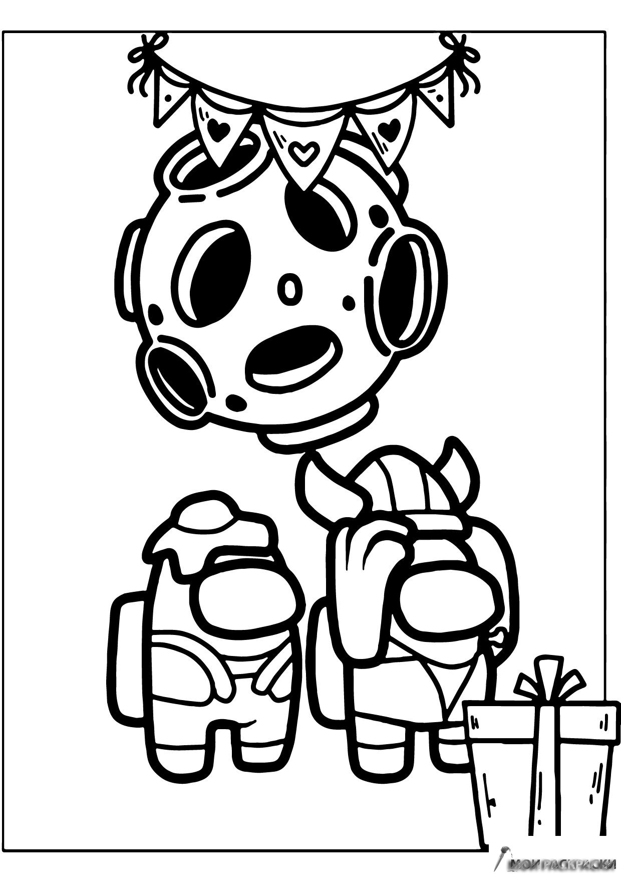 Раскраска Амонг Ас члены экипажа и подарок на День святого Валентина