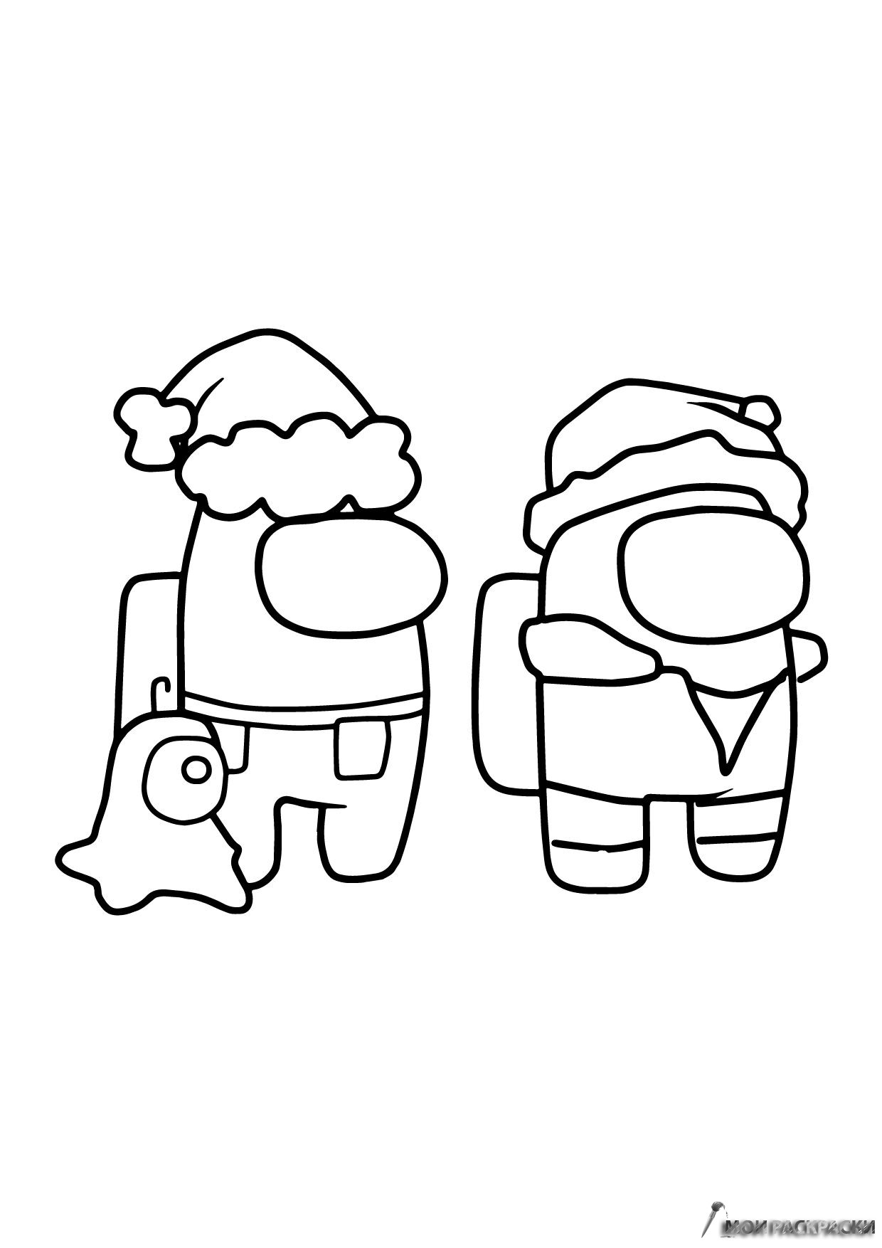 Раскраска Амонг Ас члены экипажа на Новый год