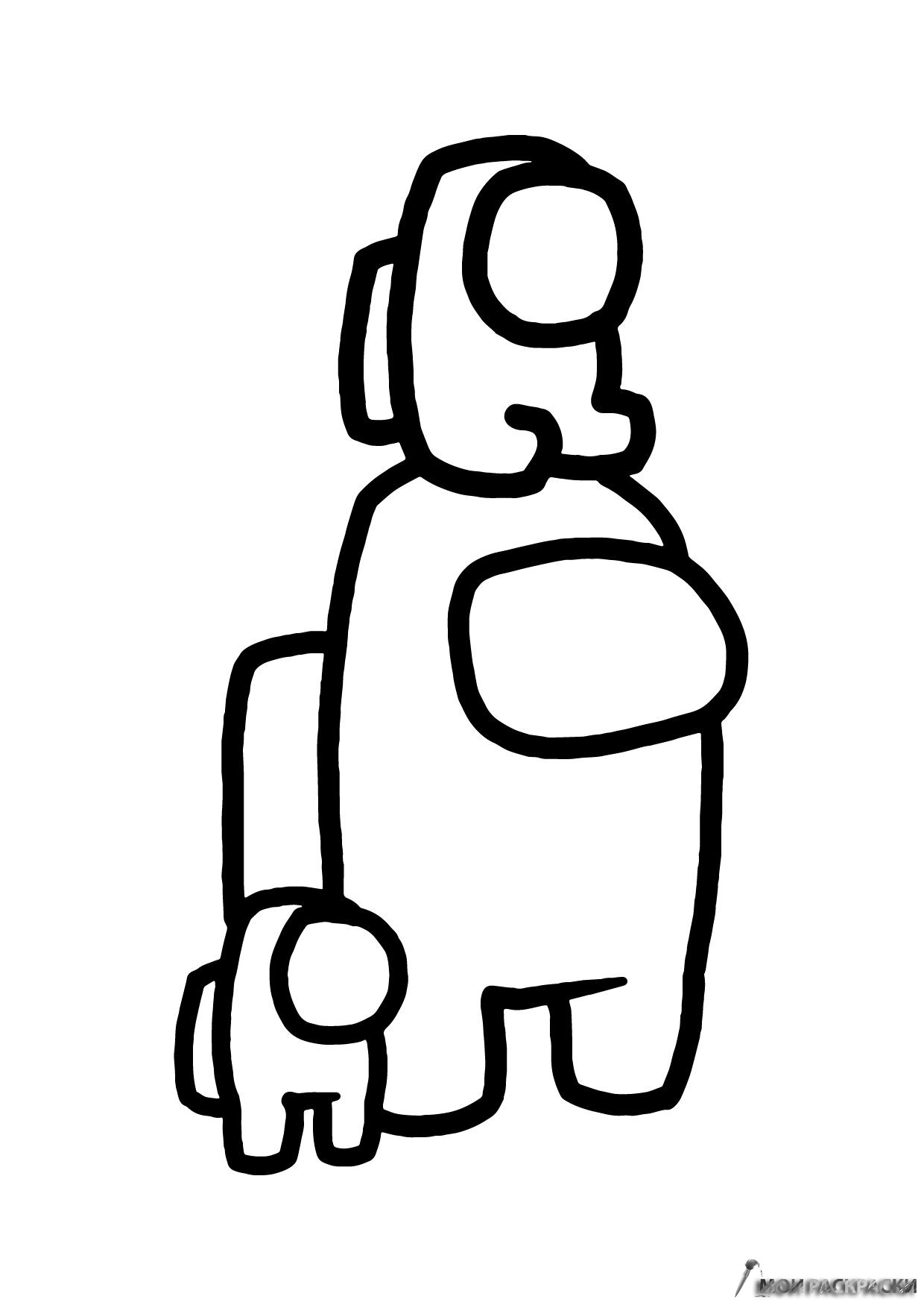 Раскраска Амонг Ас персонаж и мини-члены экипажа