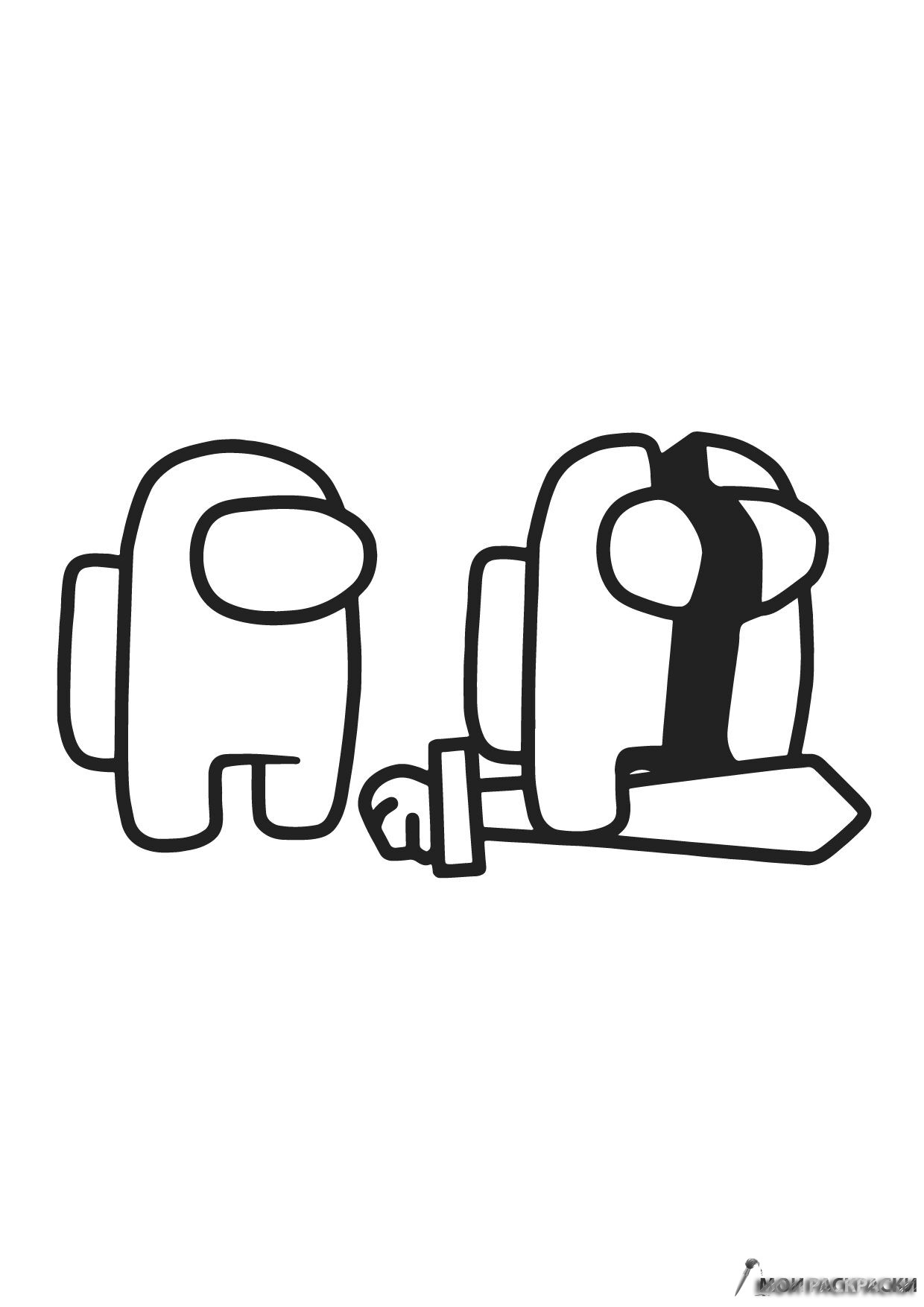 Раскраска Амонг Ас предатель разрубил члена экипажа пополам