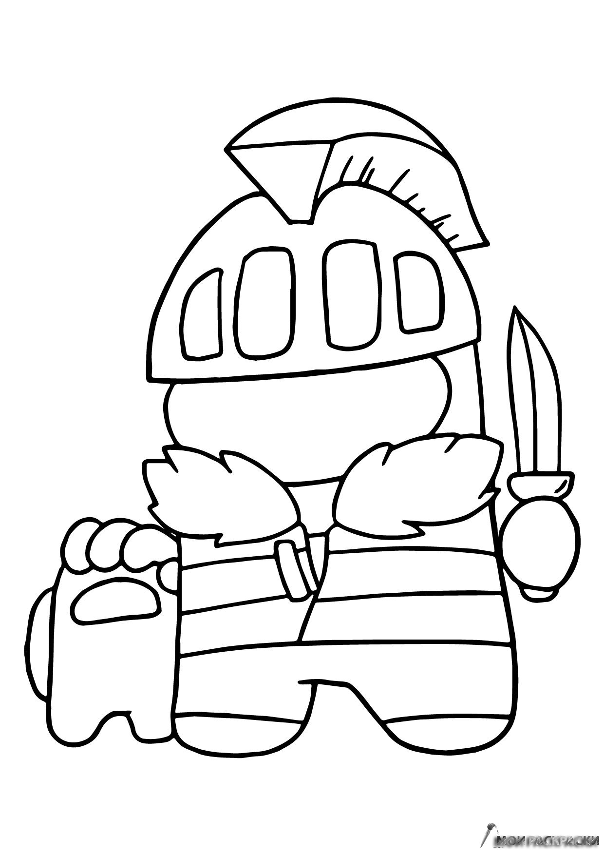 Раскраска Амонг Ас Рыцарь и Мини-член экипажа