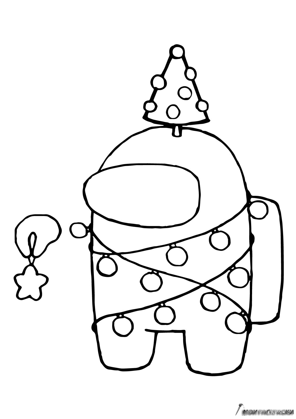 Раскраска Амонг Ас шляпка ёлочка на Рождество