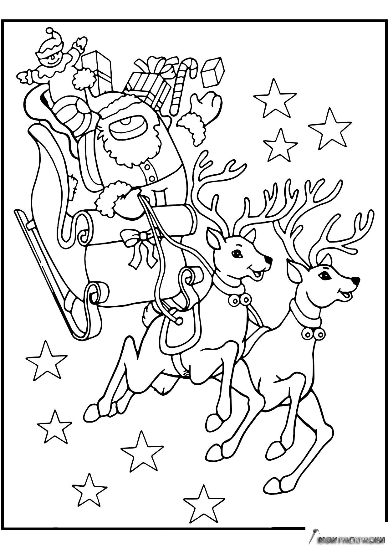 Раскраска Амонг Ас упряжка Санта Клауса на Новый год