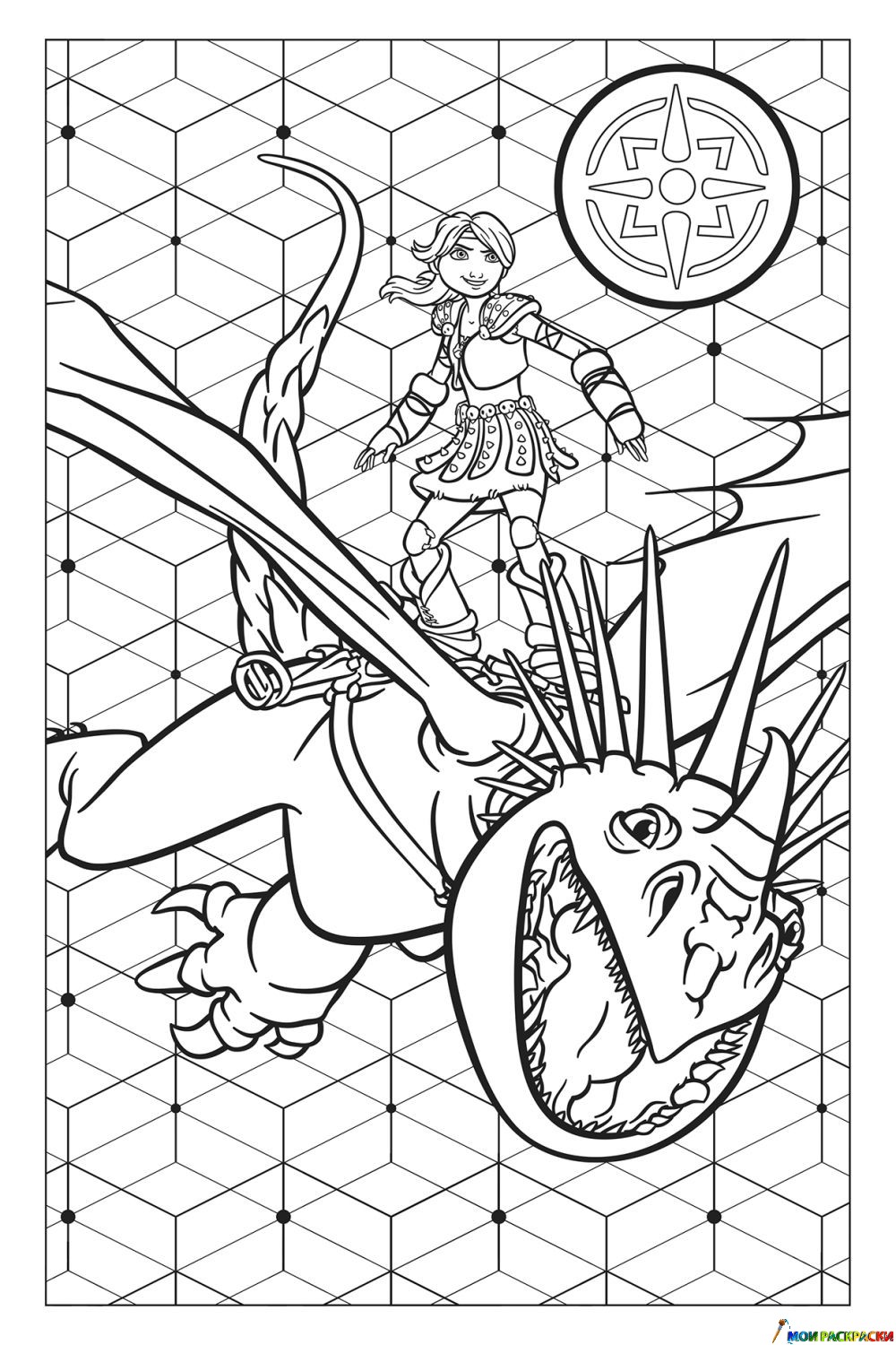 Раскраска Астрид и Злобный Змеевик Громгильда