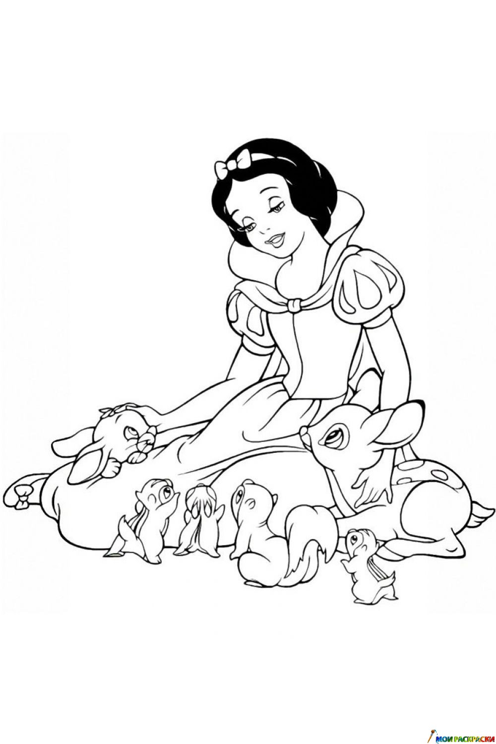 Раскраска Белоснежка и зверята