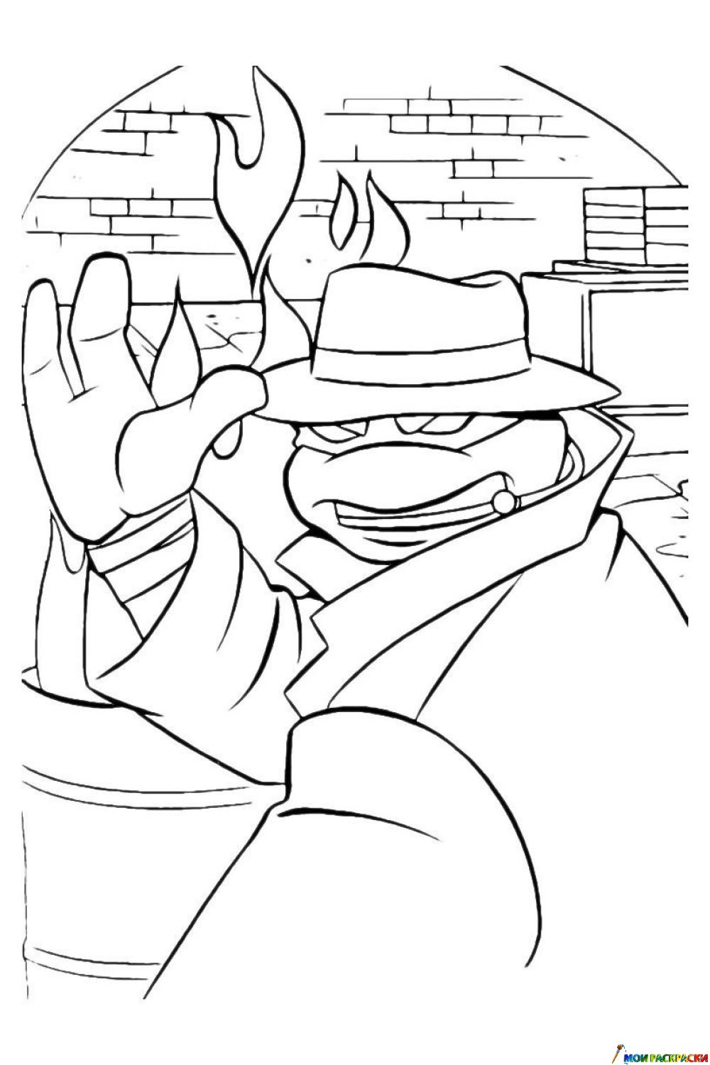 Раскраска Черепашка-Ниндзя в темном переулке