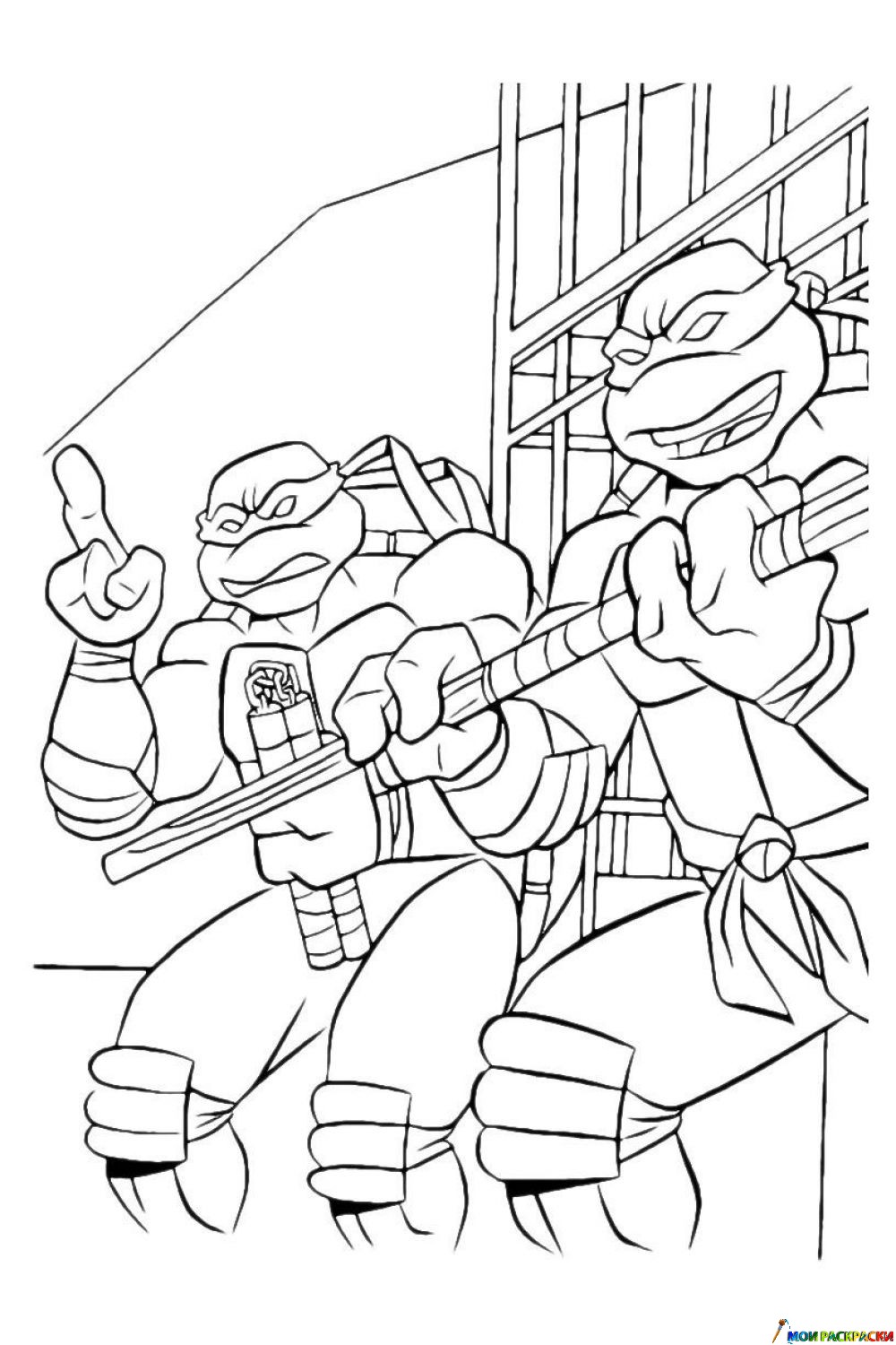 Раскраска Черепашки-Ниндзя идут в бой