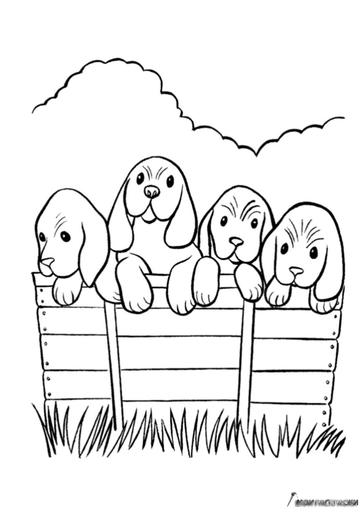Раскраска Четыре собаки
