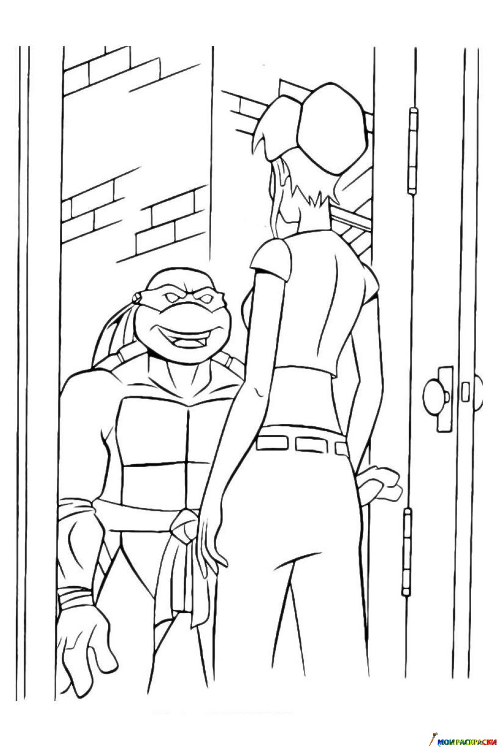 Раскраска Эйприл О'Нил встречает Черепашку