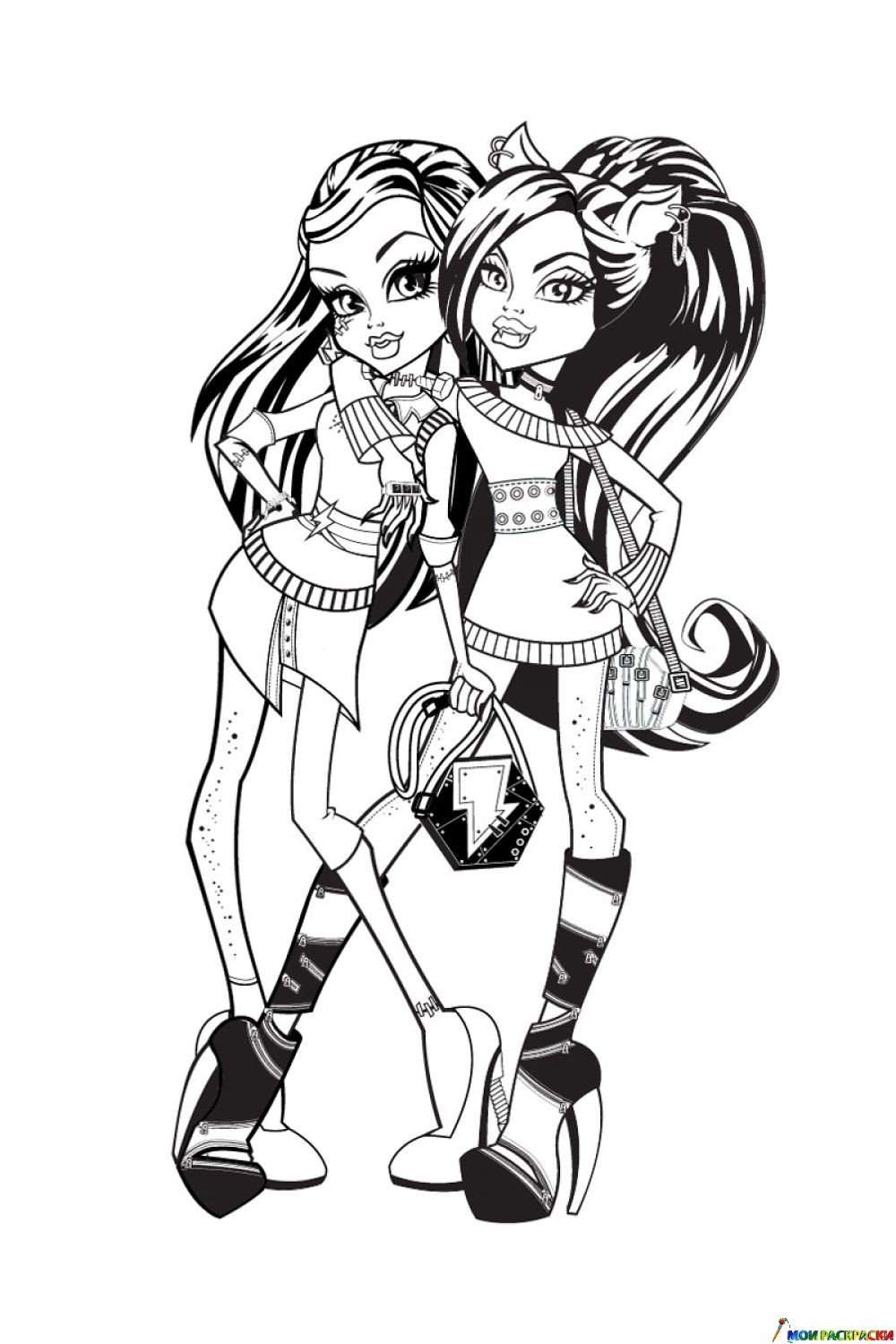 Раскраска Фрэнки Штейн и Клодин Вульф