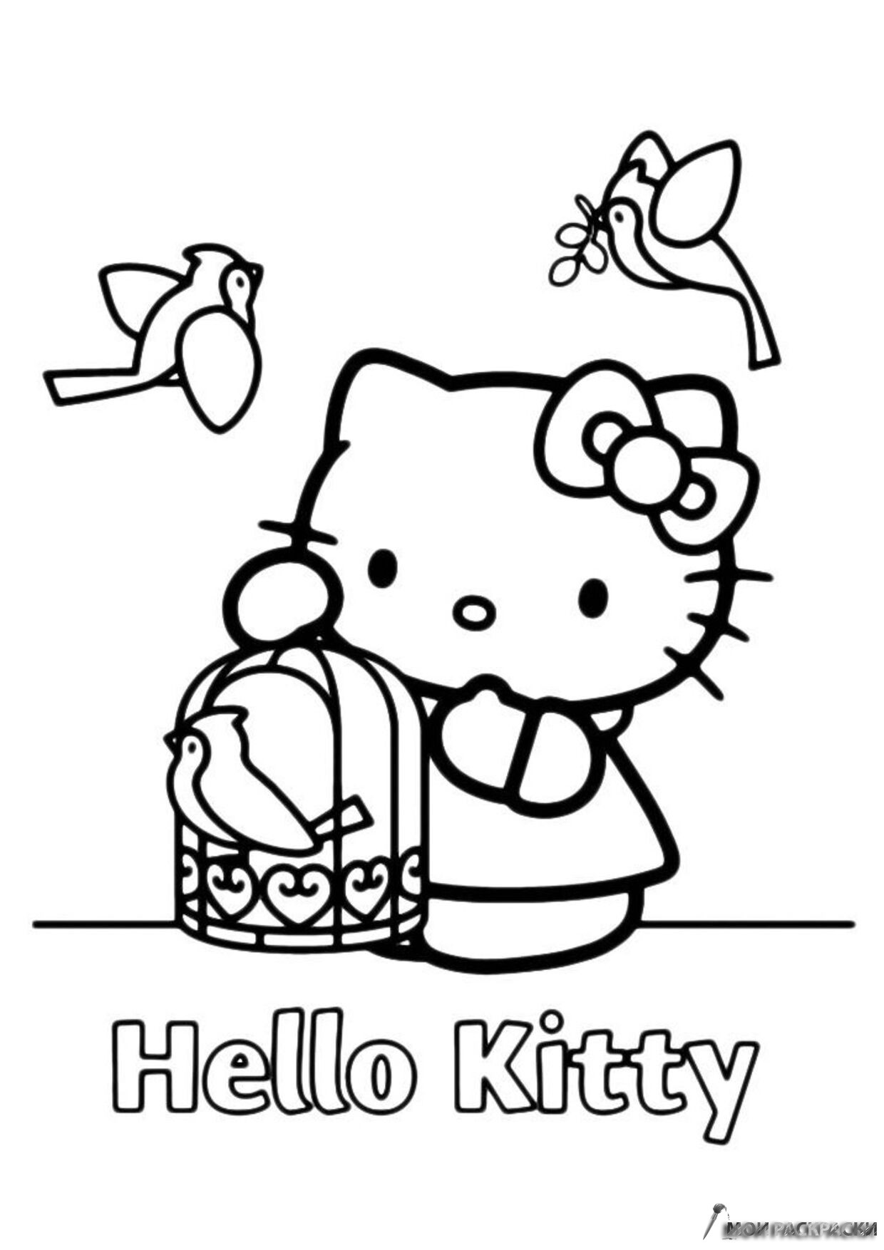Раскраска Хелло Китти с птичками