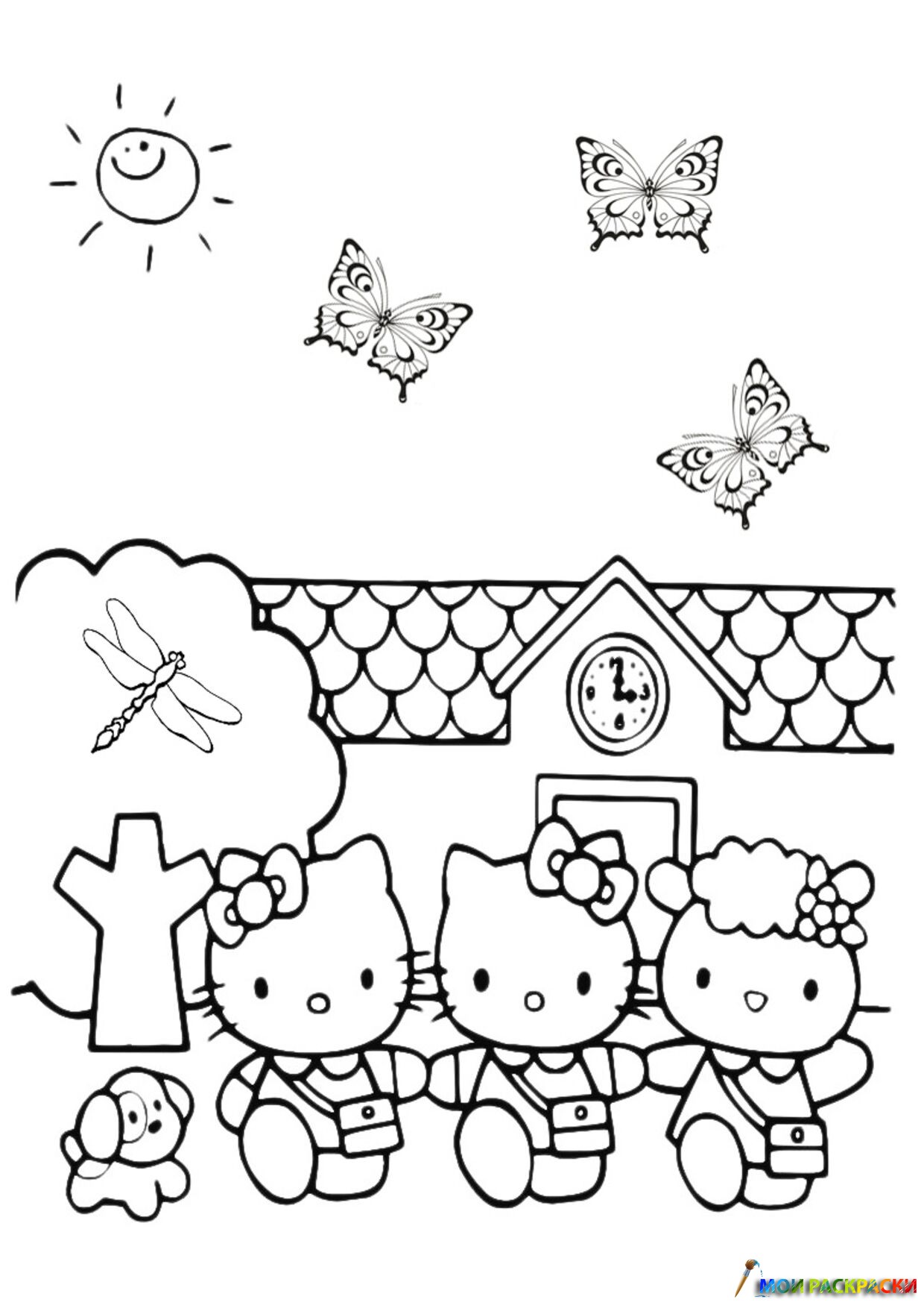 Раскраска Китти гуляет с подружками