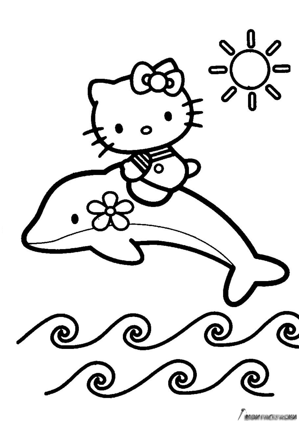 Раскраска Китти подружилась с дельфином