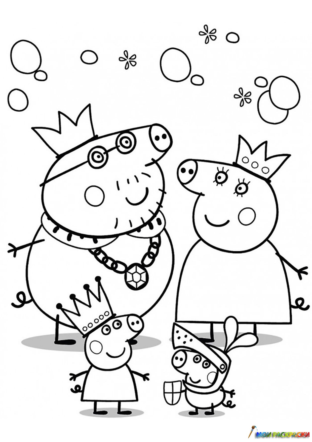 Раскраска Королевская семья Пеппы