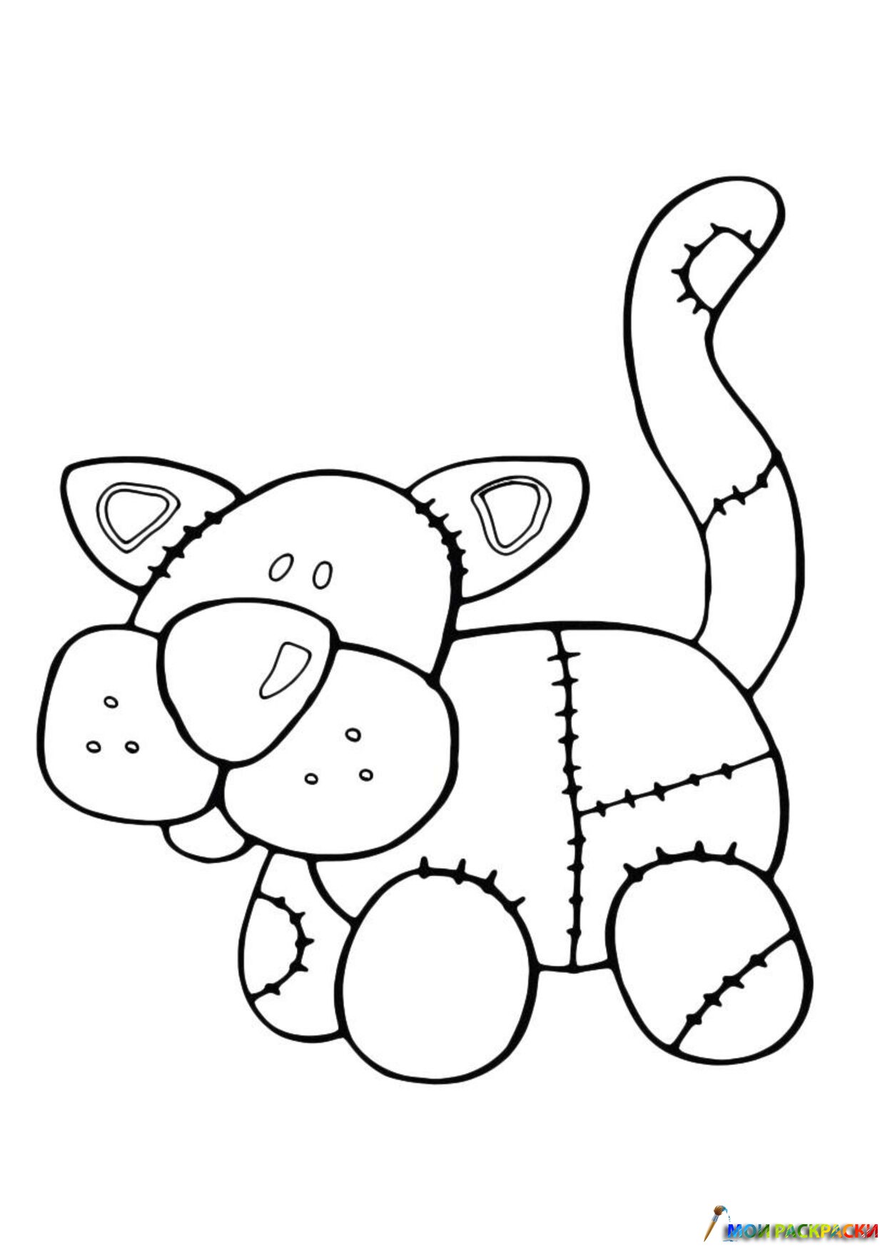 Раскраска Кот-игрушка в заплатках