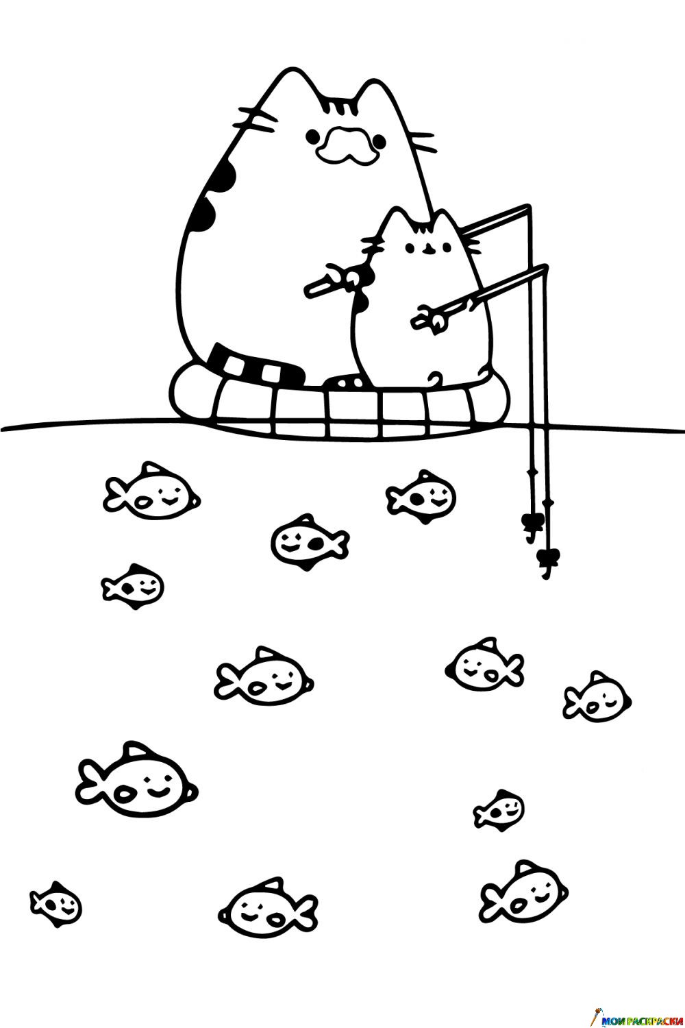 Раскраска Кот Пушин на рыбалке