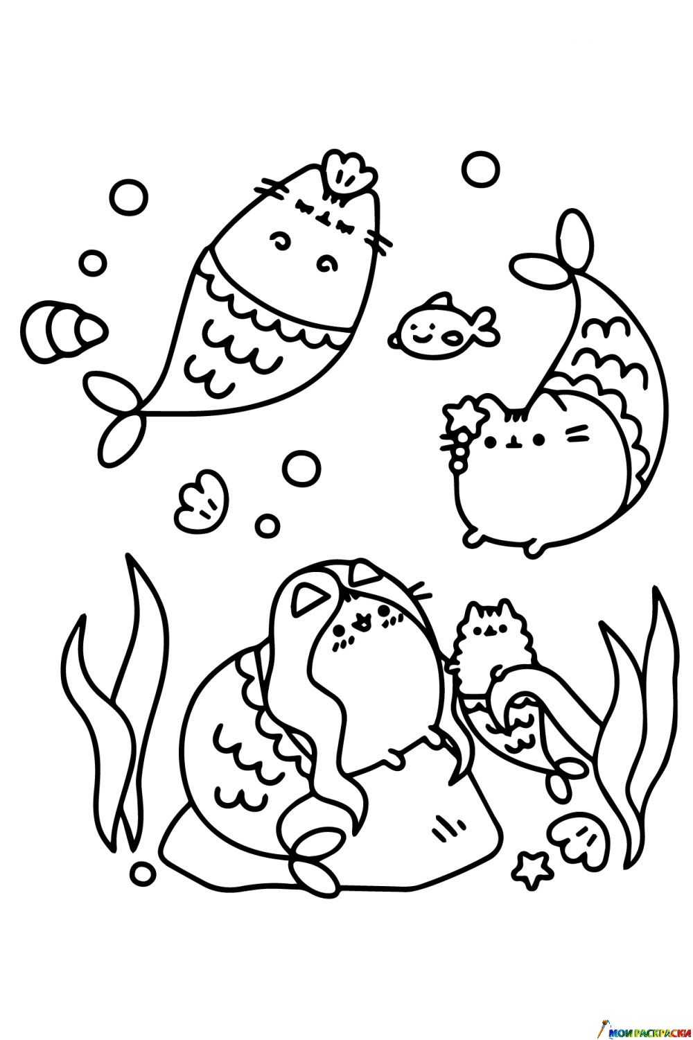 Раскраска Кот Пушин русалки