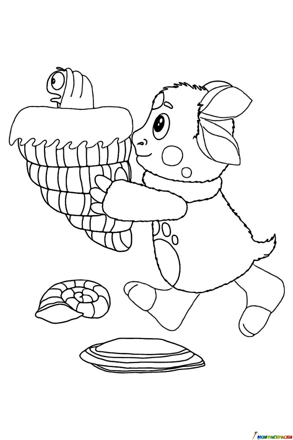 Раскраска Лунтик спасает пиявку