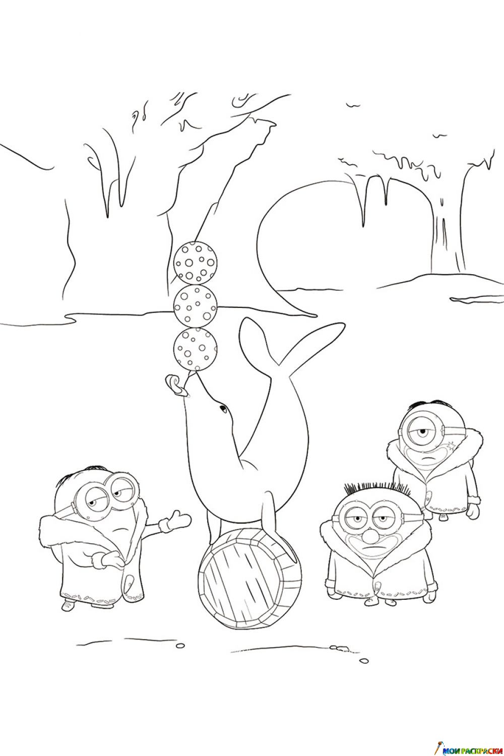 Раскраска Миньоны в цирке