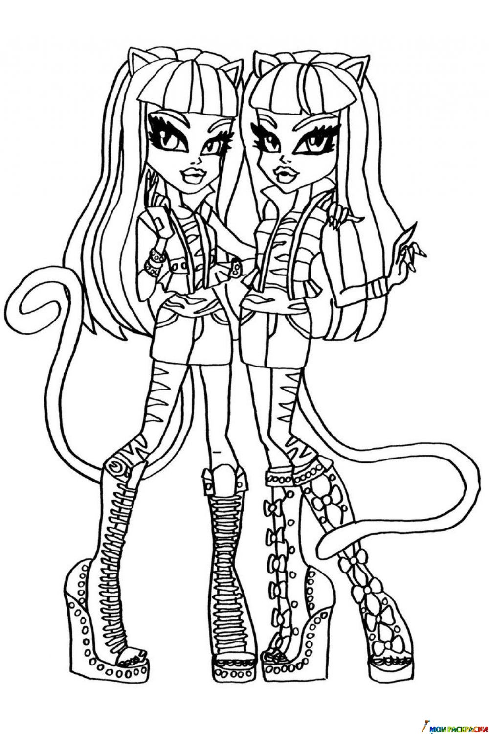 Раскраска Монстр Хай Мяулоди и Пурсефона