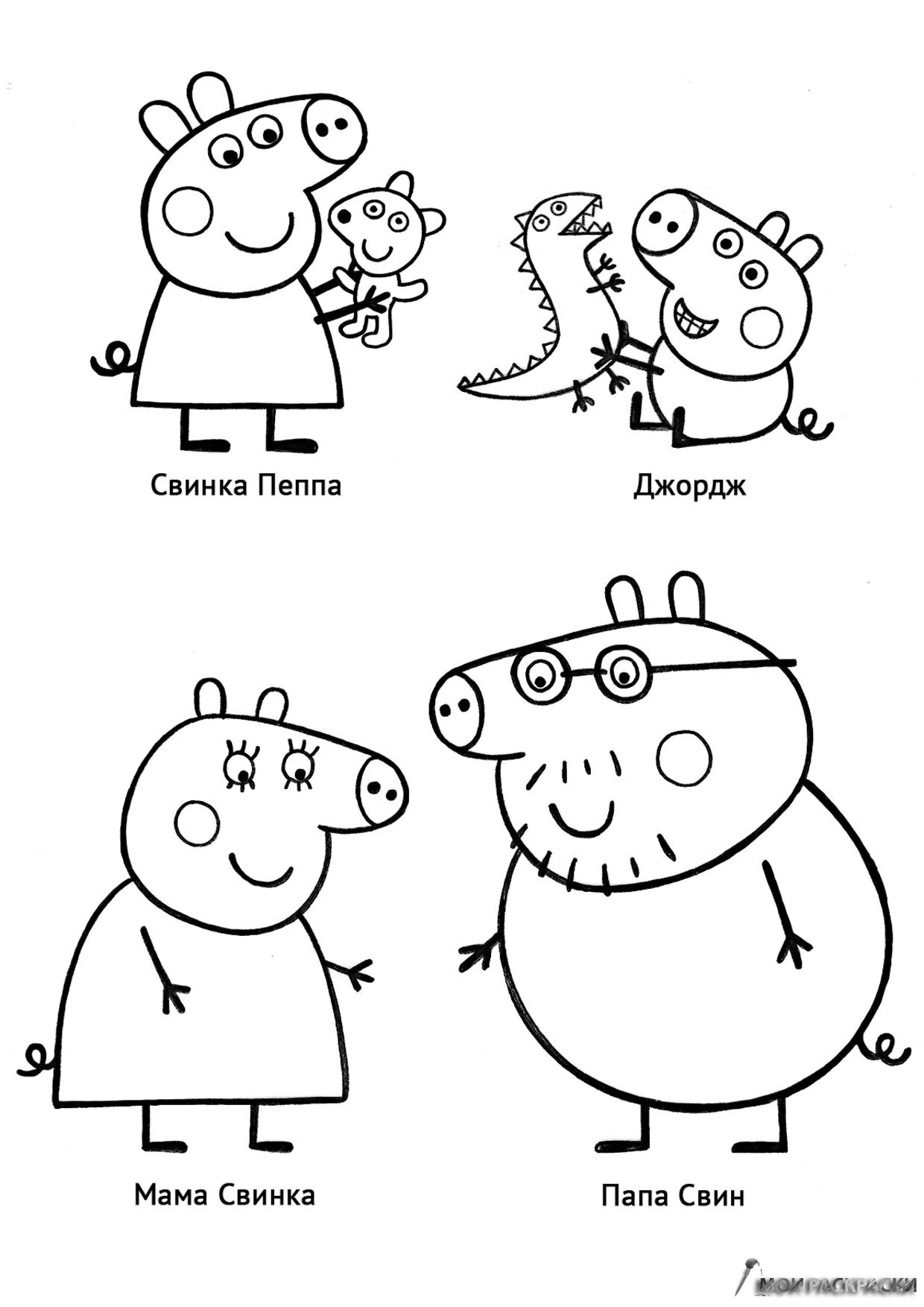 Раскраска Пеппа, Джордж, мама и папа