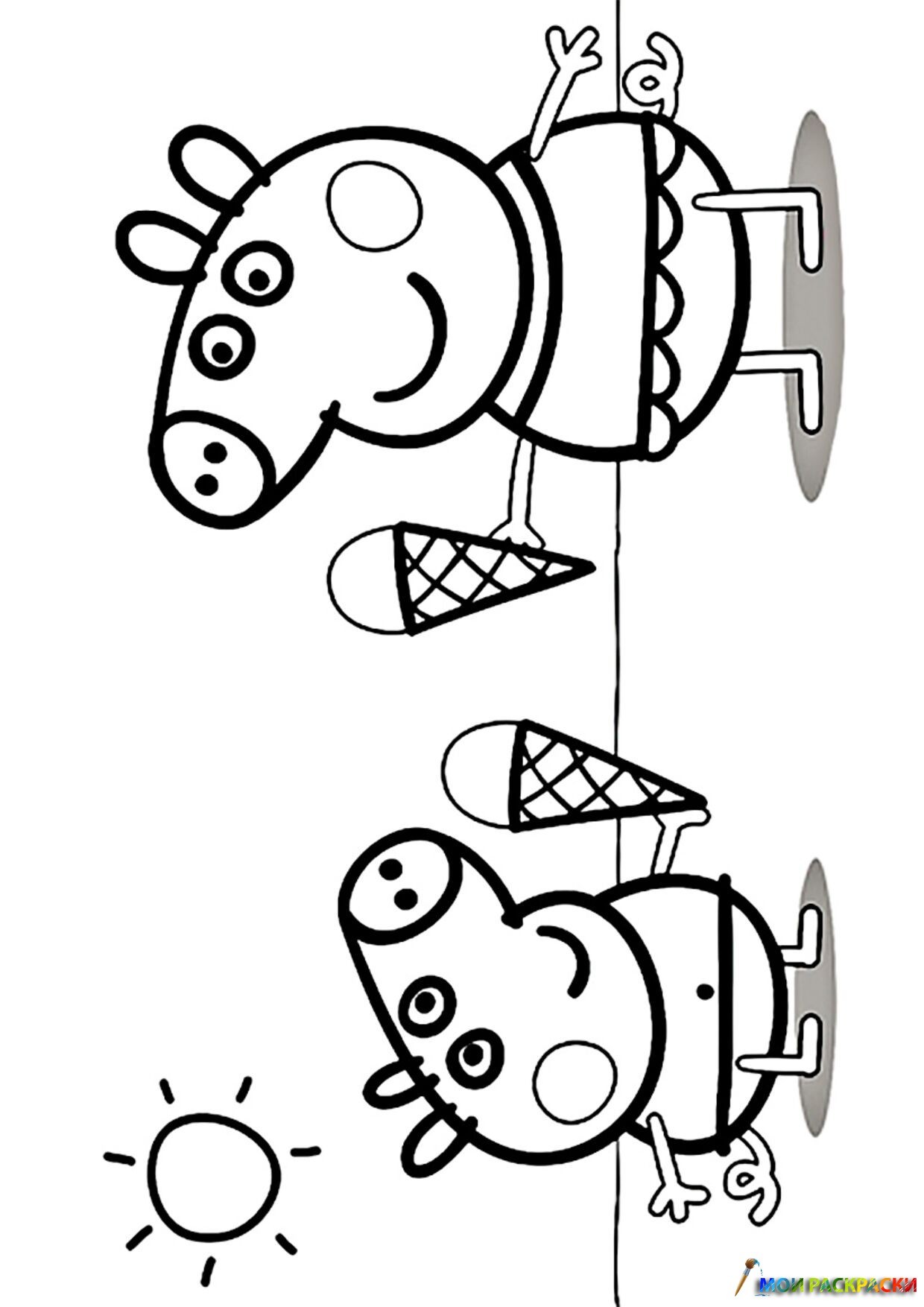 Раскраска Пеппа и Джордж с мароженым