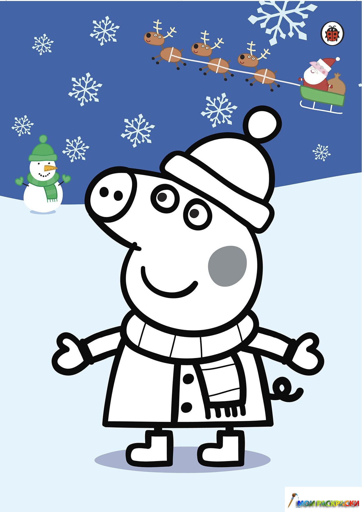 Раскраска Пеппа на Рождество и Новый год