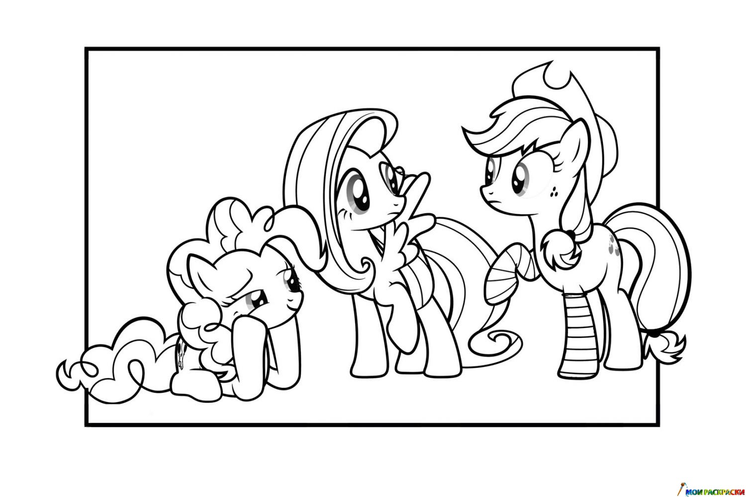 Раскраска Пинки Пай, Флаттершай и Эпплджек