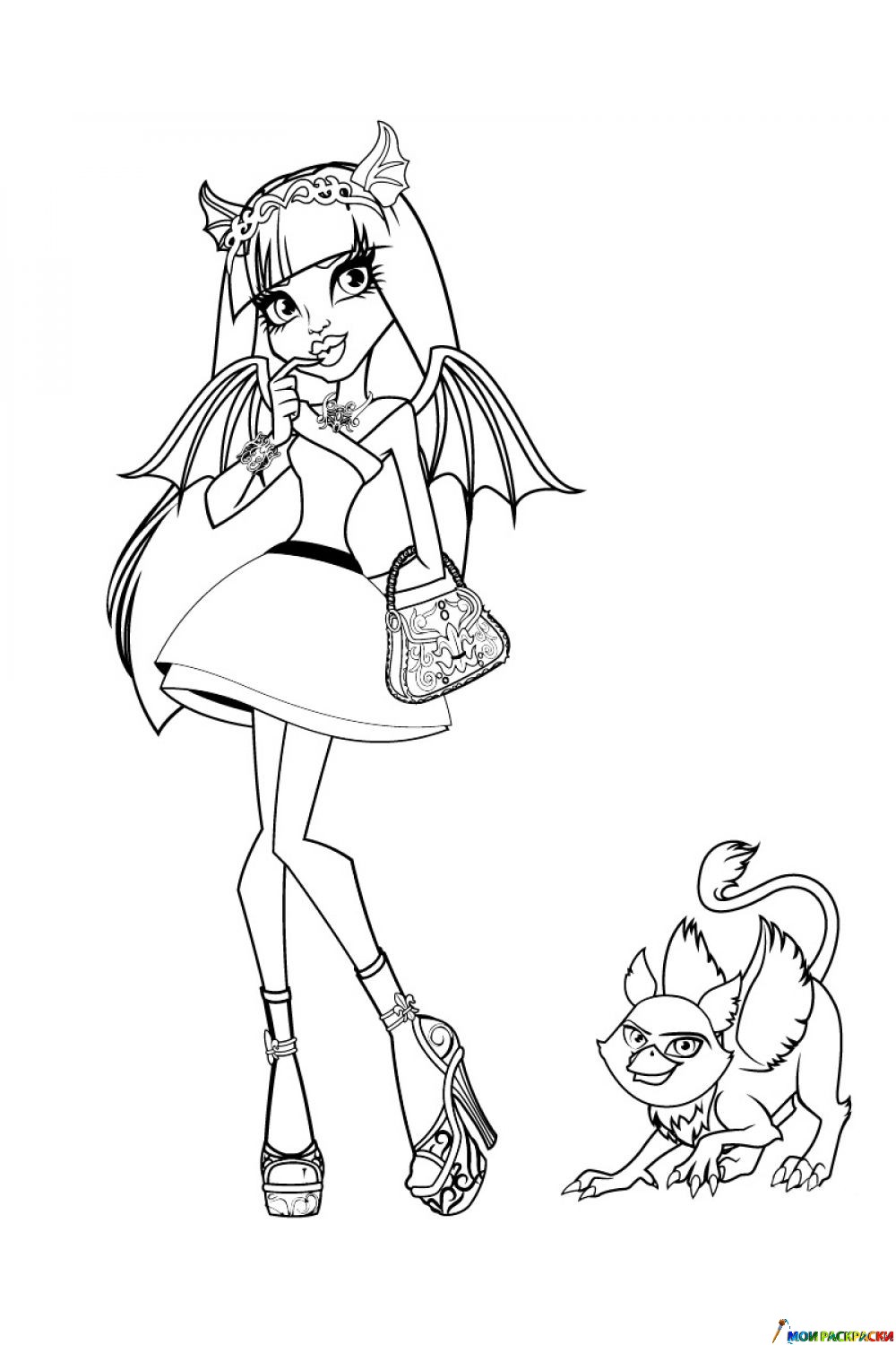 Раскраска Рошель Гойл и гриф-горгулья Ру