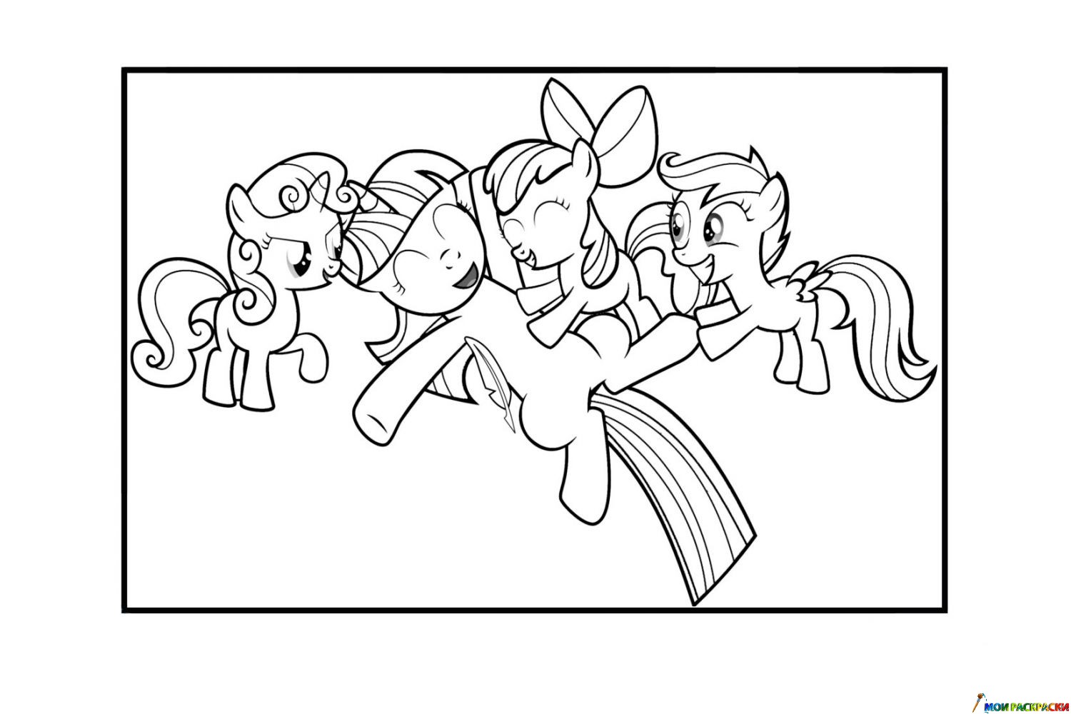 Раскраска Счастливые пони