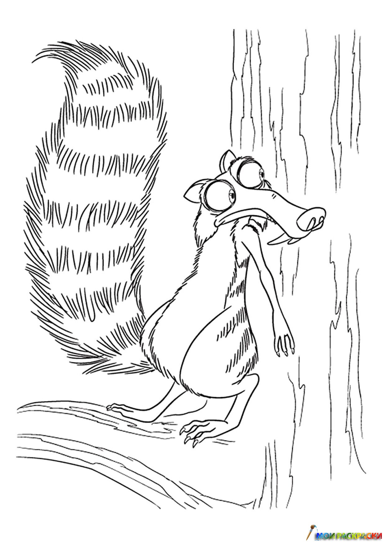 Раскраска Скрат прячется за деревом