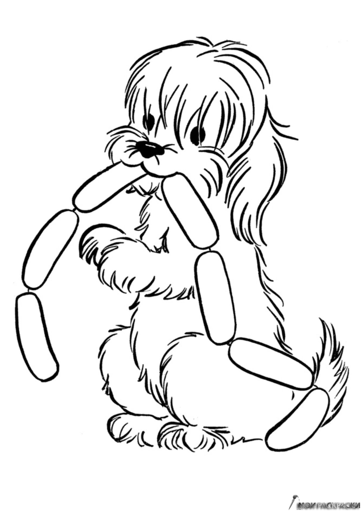 Раскраска Собака и сосиски