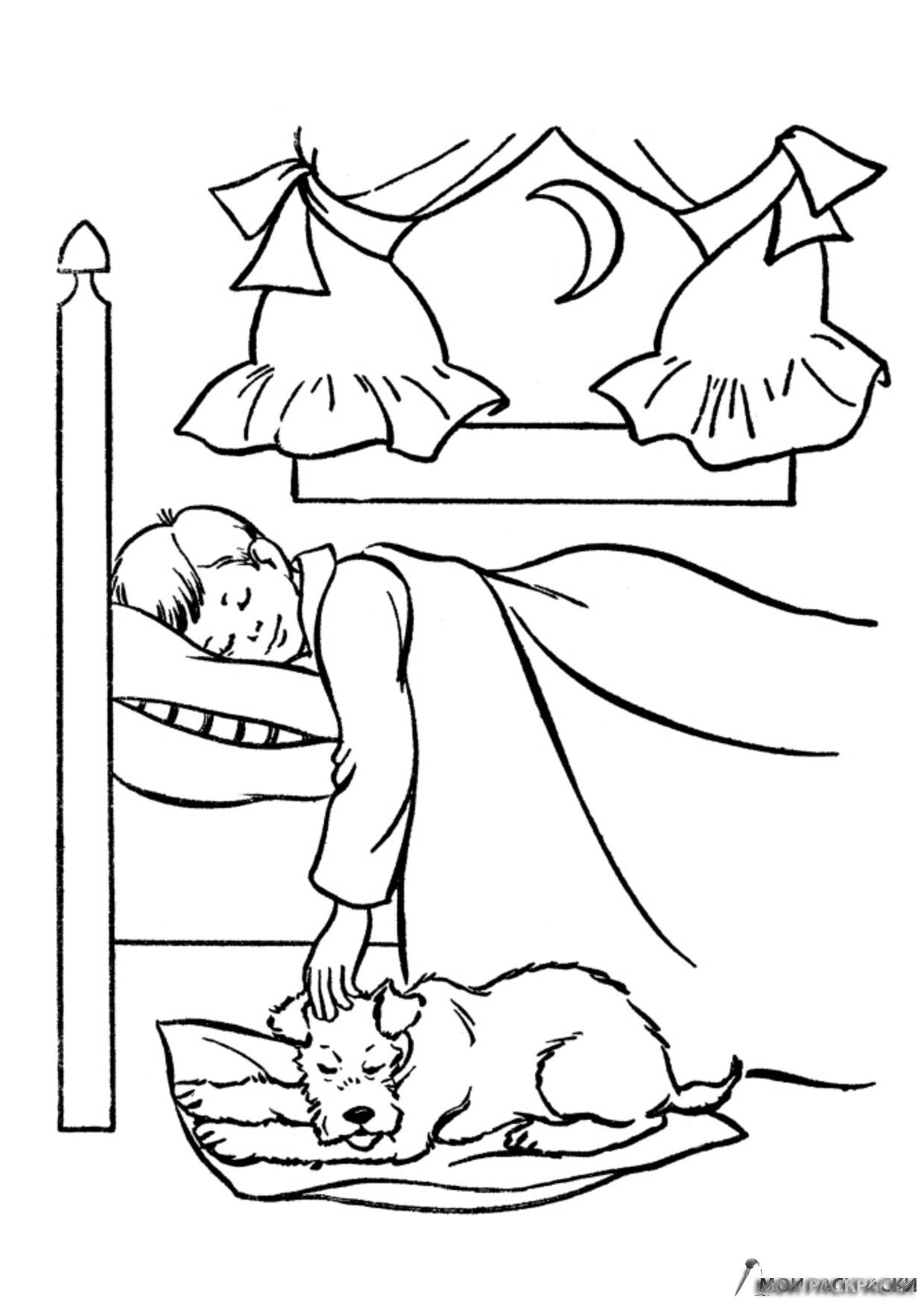 Раскраска Собака спит возле хозяина