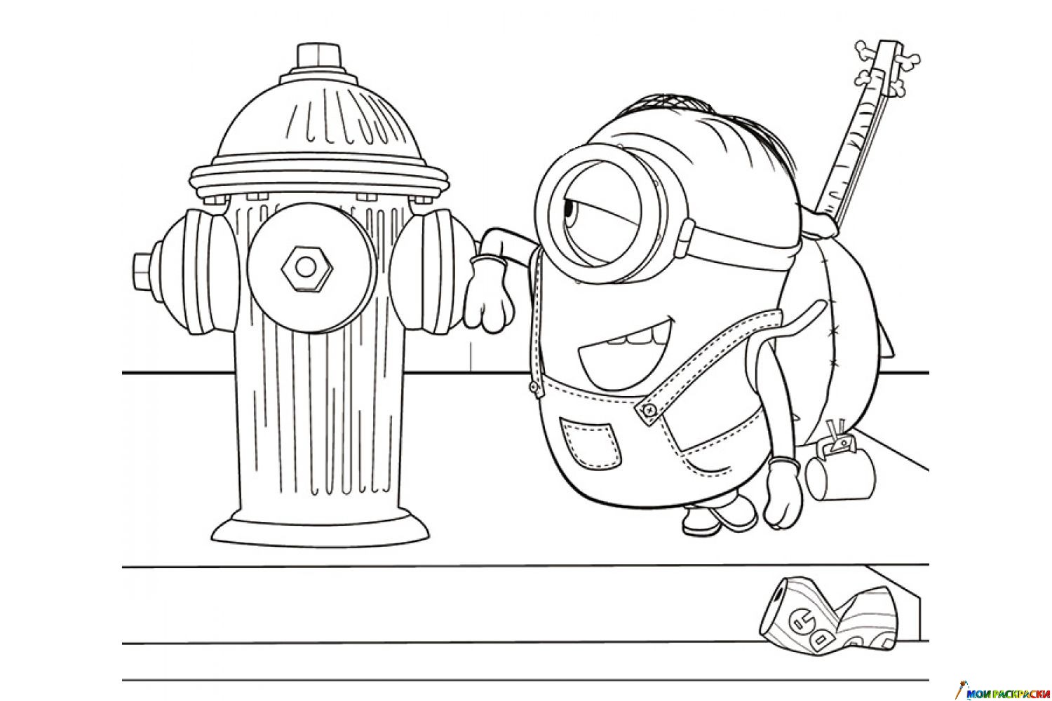 Раскраска Стюарт и пожарный гидрант