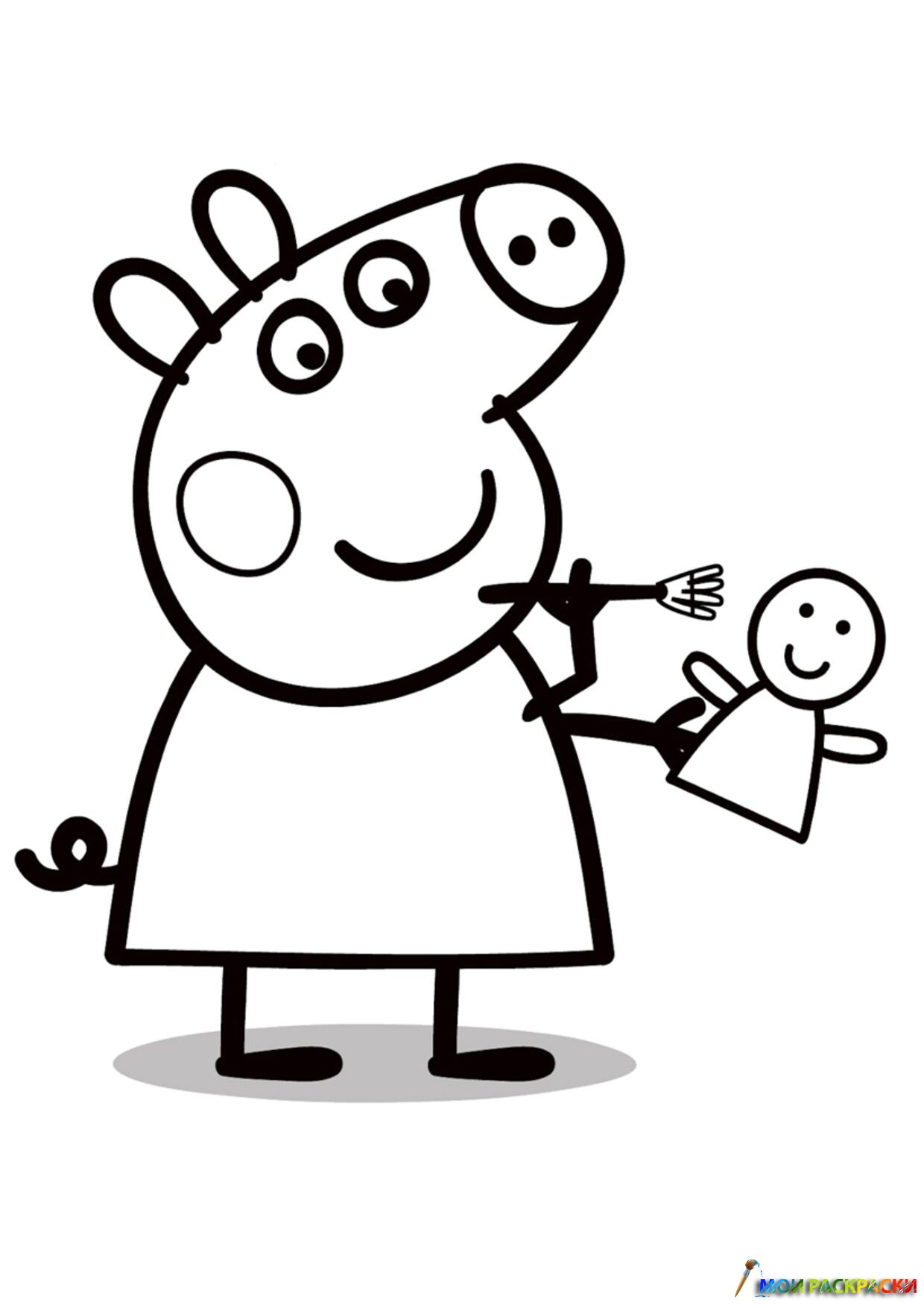 Раскраска Свинка Пеппа с куклой