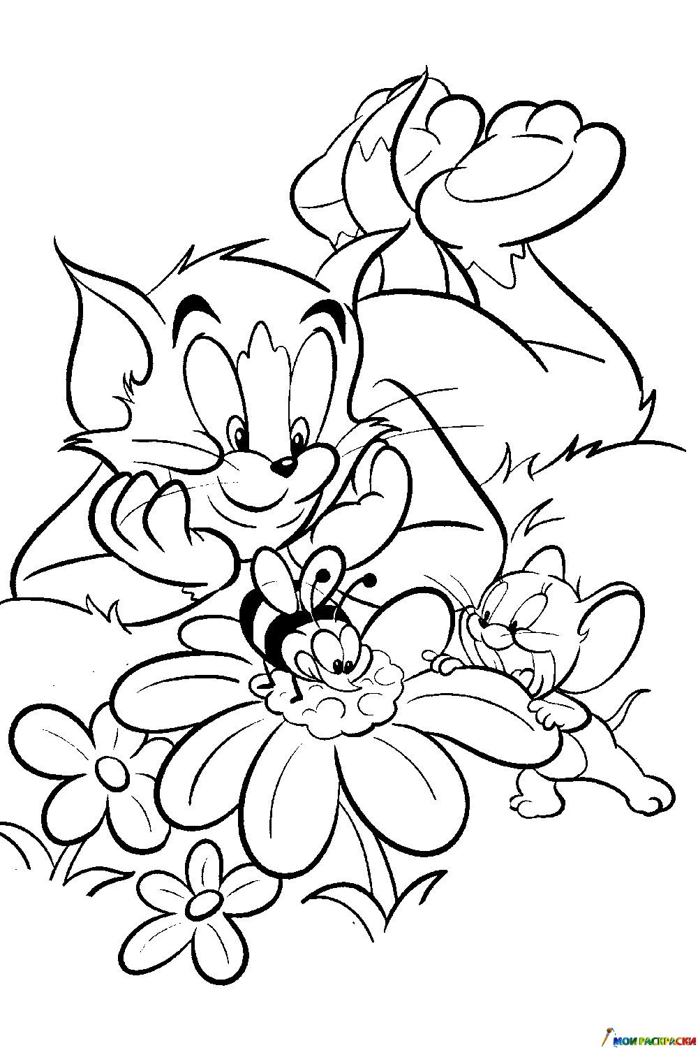 Раскраска Том, Джерри и пчёлка