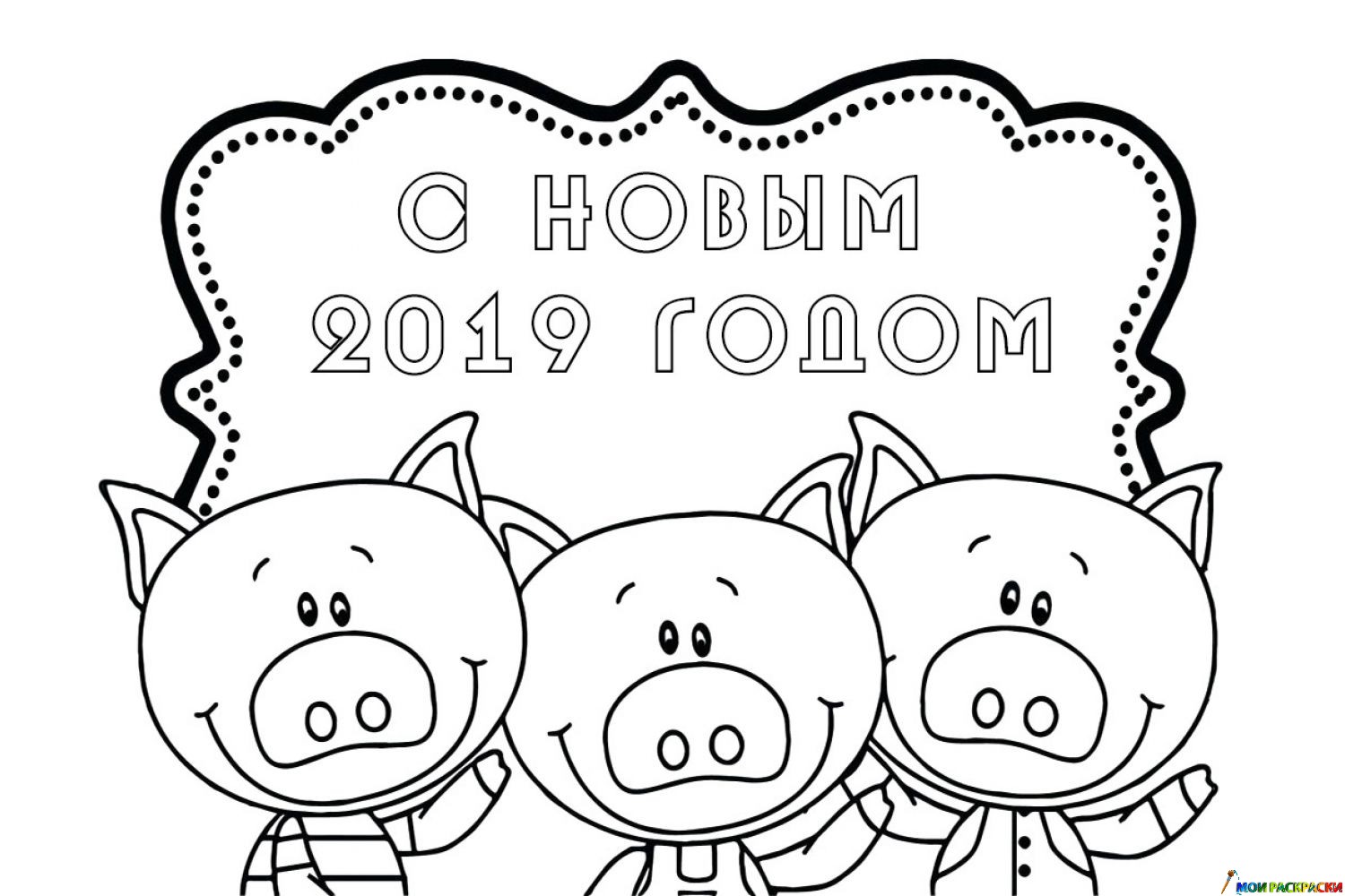 Раскраска Три поросёнка на Новый год