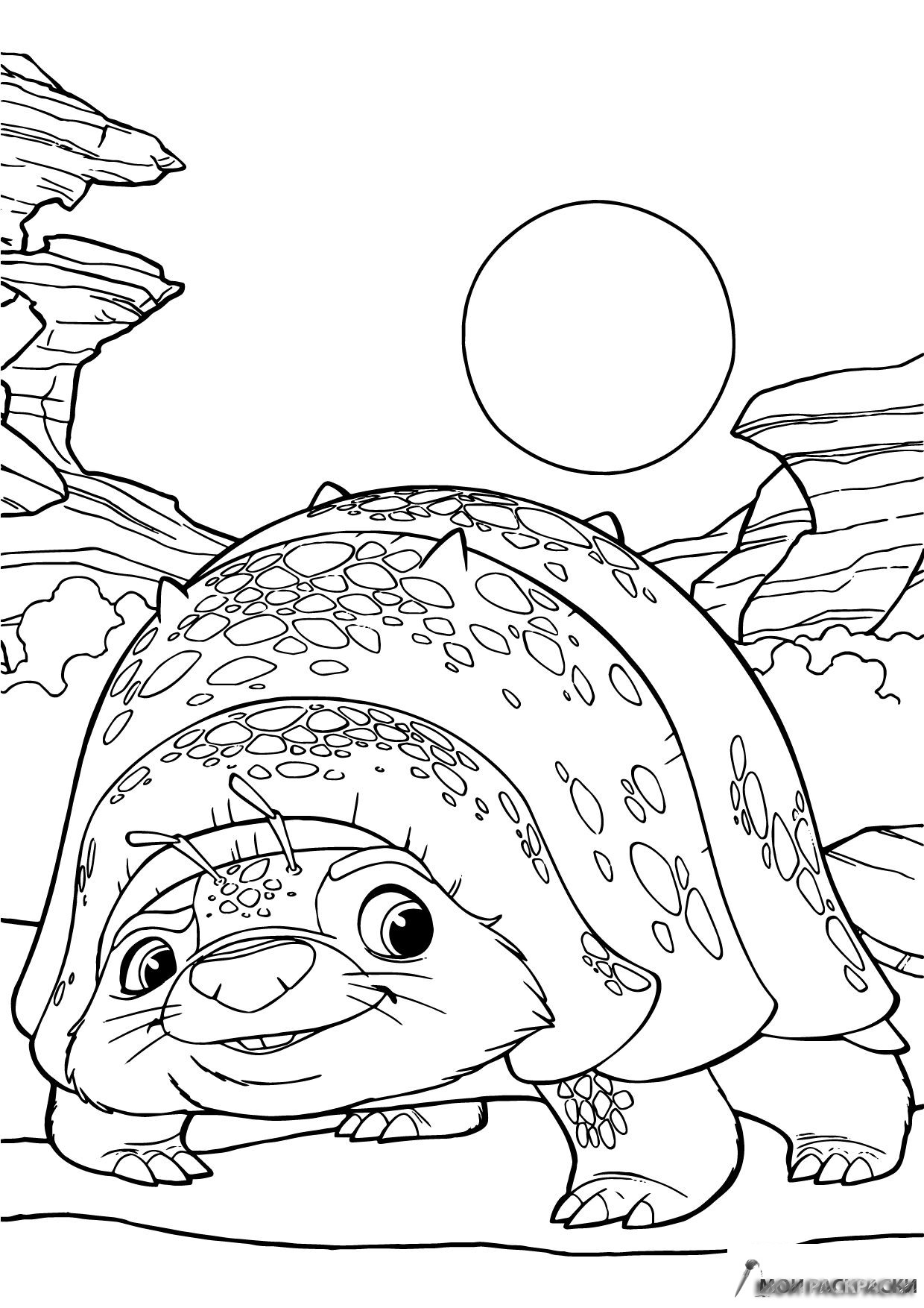 Раскраска Тук Тук на фоне гор