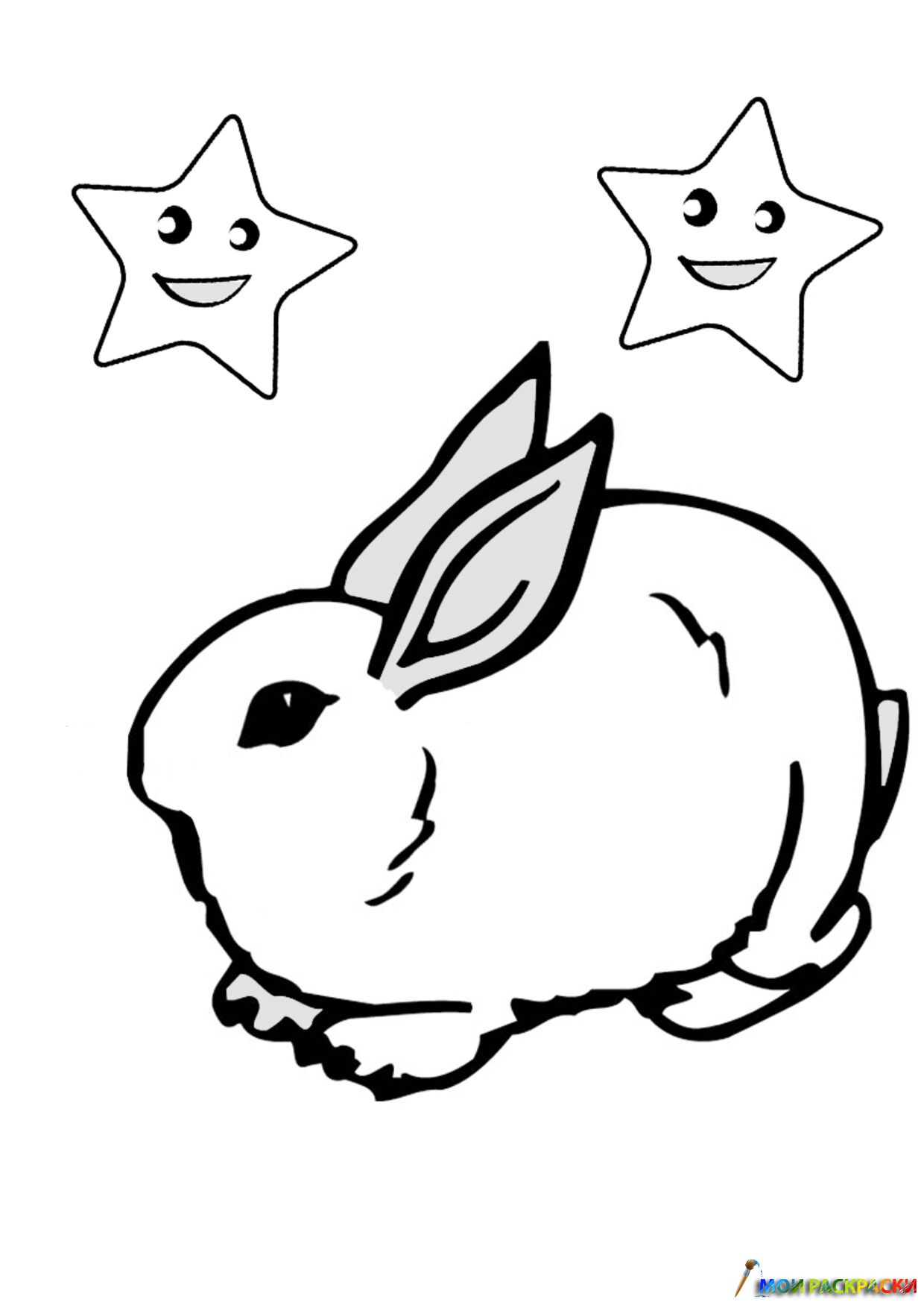 Раскраска Заяц сидит под звездами