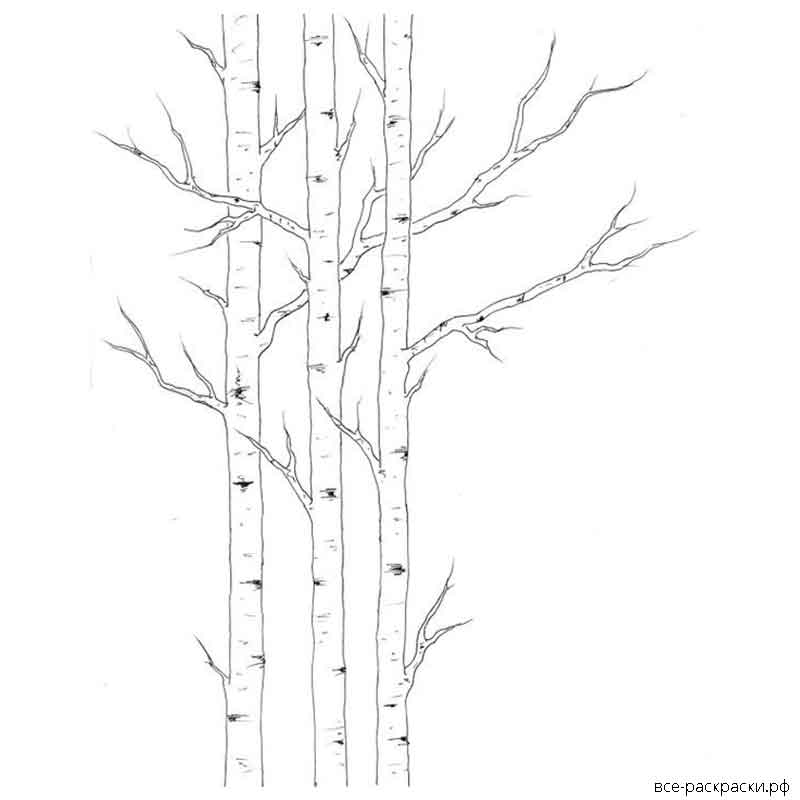 Береза без листьев для детей