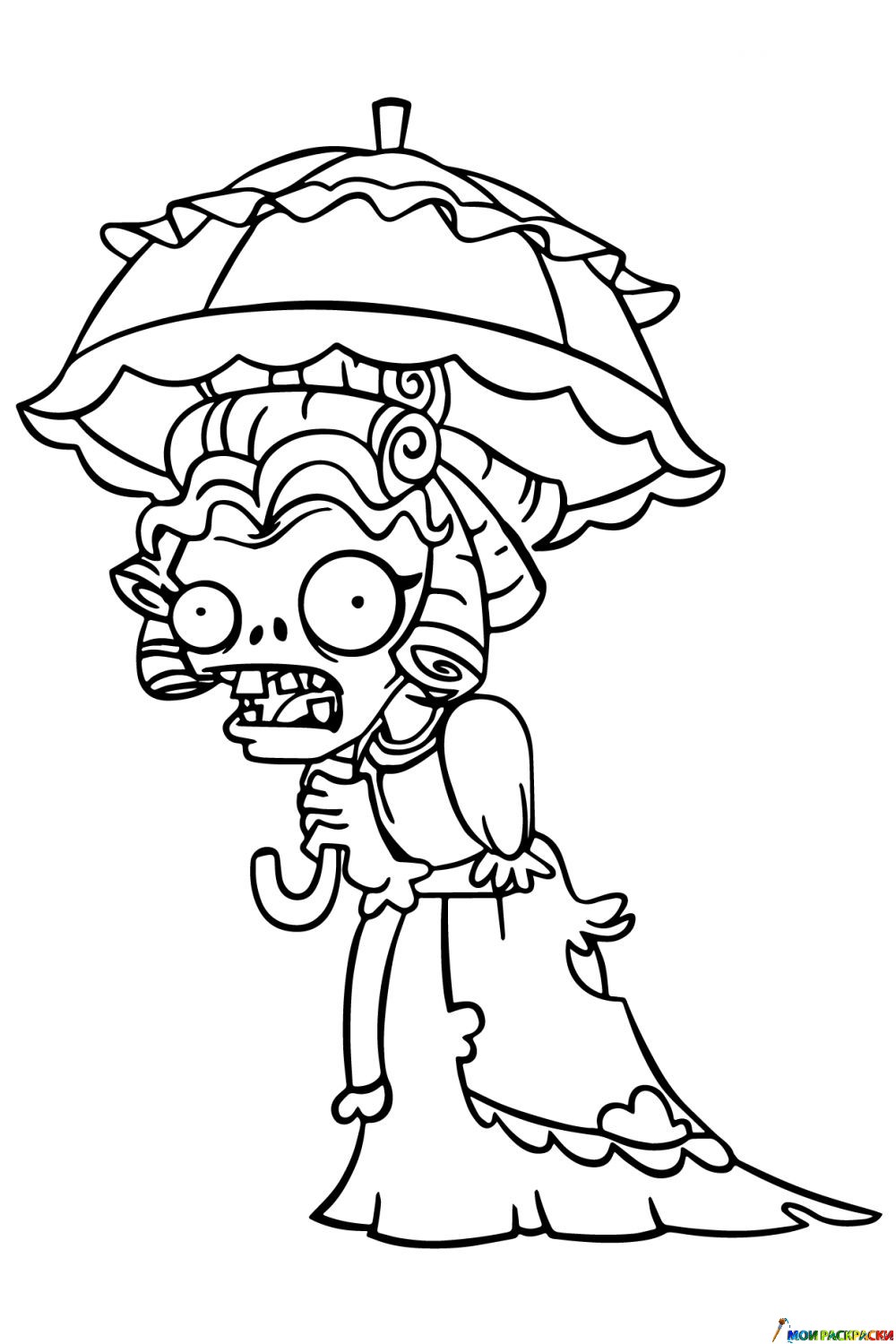 Раскраска Зомби с зонтиком